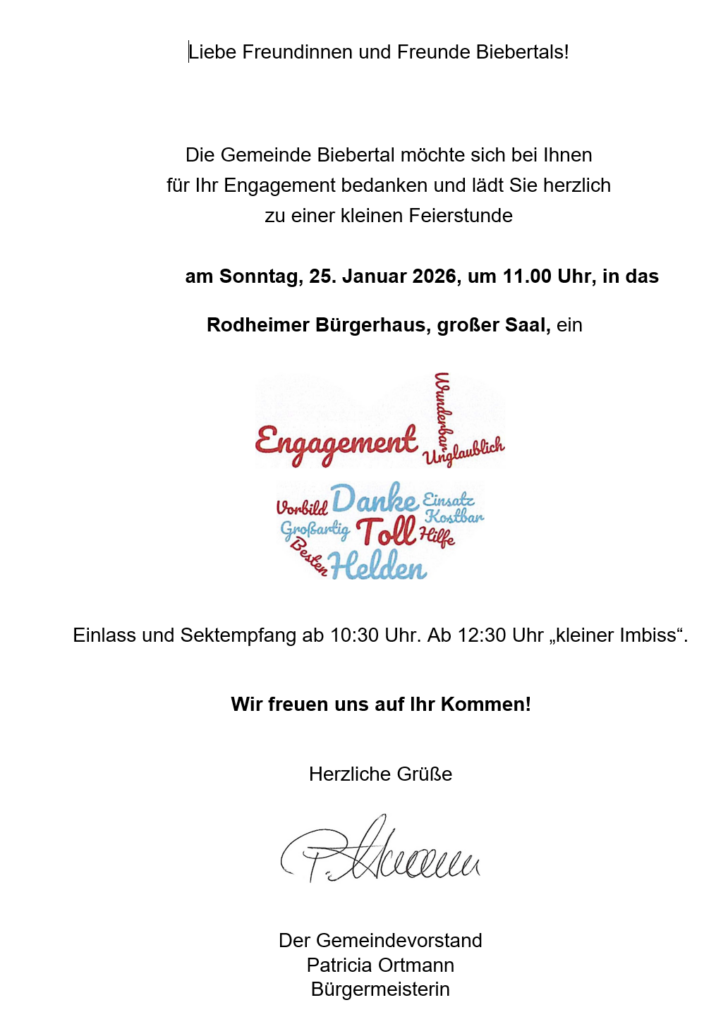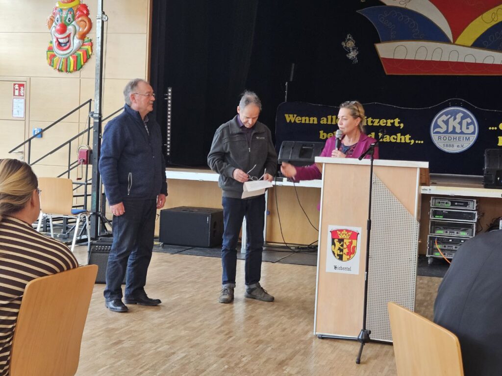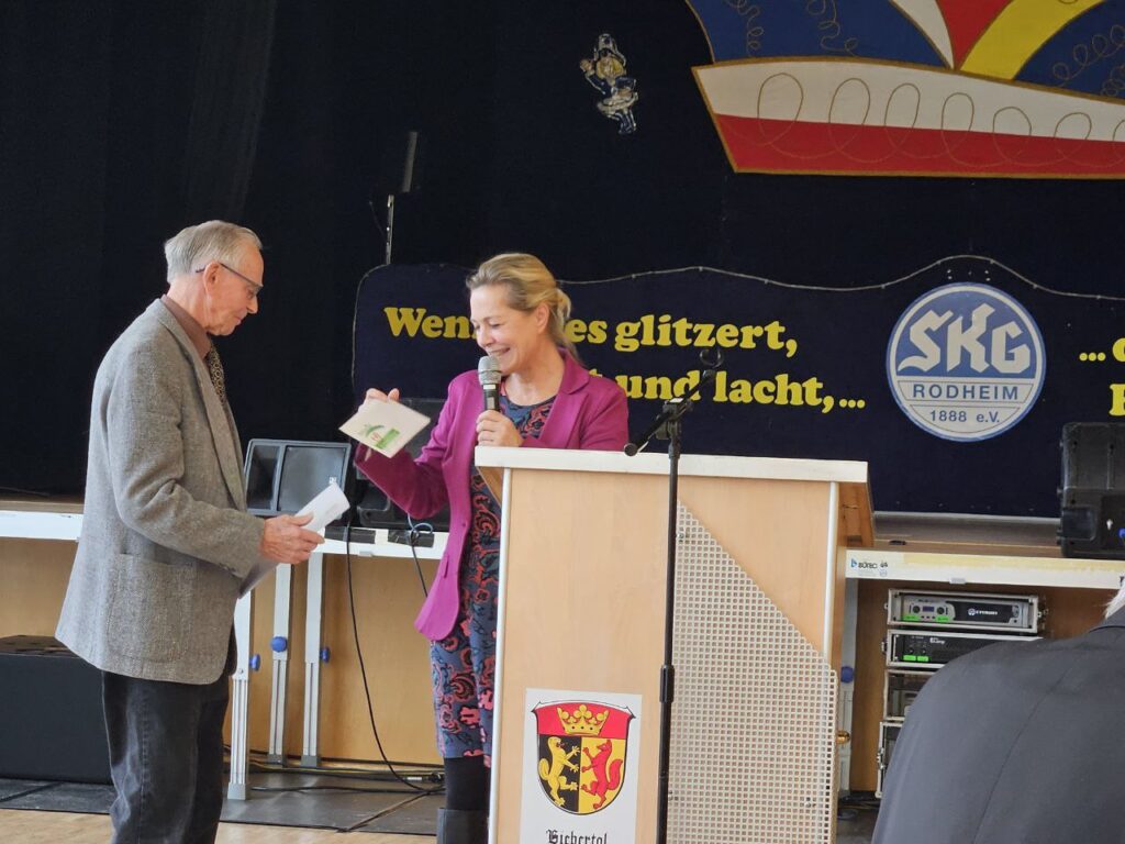 Am Morgen des 25.1.26 begrüßte die Bürgermeisterin im Bürgerhaus Rodheim vor bereits karnevalistischer Kulisse die zahlreichen, sich ehrenamtlich auf vielfältigste Weise in unserer Gemeinde engagierenden Menschen. Seit längerem hatten sich politische Gremien mit diesem Thema befasst und nun in einer kleinen Kommission die von Bürgern eingereichten Vorschläge für zu ehrende Bürger am 15.1.26 gesichtet und 12 Kandidat/innen für dieses Jahr ausgesucht. Frau Riedl aus der Gemeindeverwaltung hatte, trotz der Kürze der Zeit, alle Vorbereitungen zum Termin geschafft.