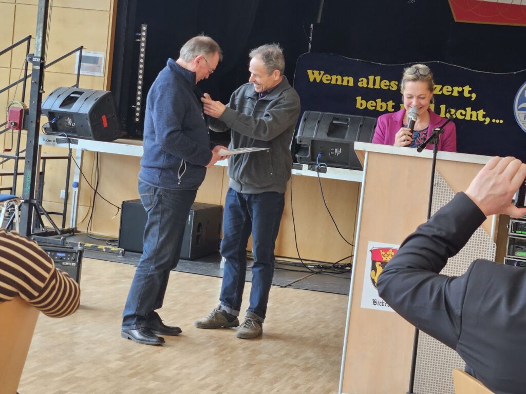 Thomas konnte dann gleich auf der Podium bleiben, denn er hatte Arthur Ruppert (Bild li.) vorgeschlagen, der seit 1970 Biebertaler Leben und seine Umgebung (die auch schon mal in Tirol stattfinden kann) fotographisch und im Film festgehalten hat. Seit einigen Jahren zeigt er seine Aufnahmen beim Frankenbacher Liederkaffee, und auch das Erzählkaffee geht auf seine Initiative zurück. Bei einem derartigen Macher sind es fast selbstverständlich weitere Aufgaben, für die ihm Dank ausgesprochen wurde.