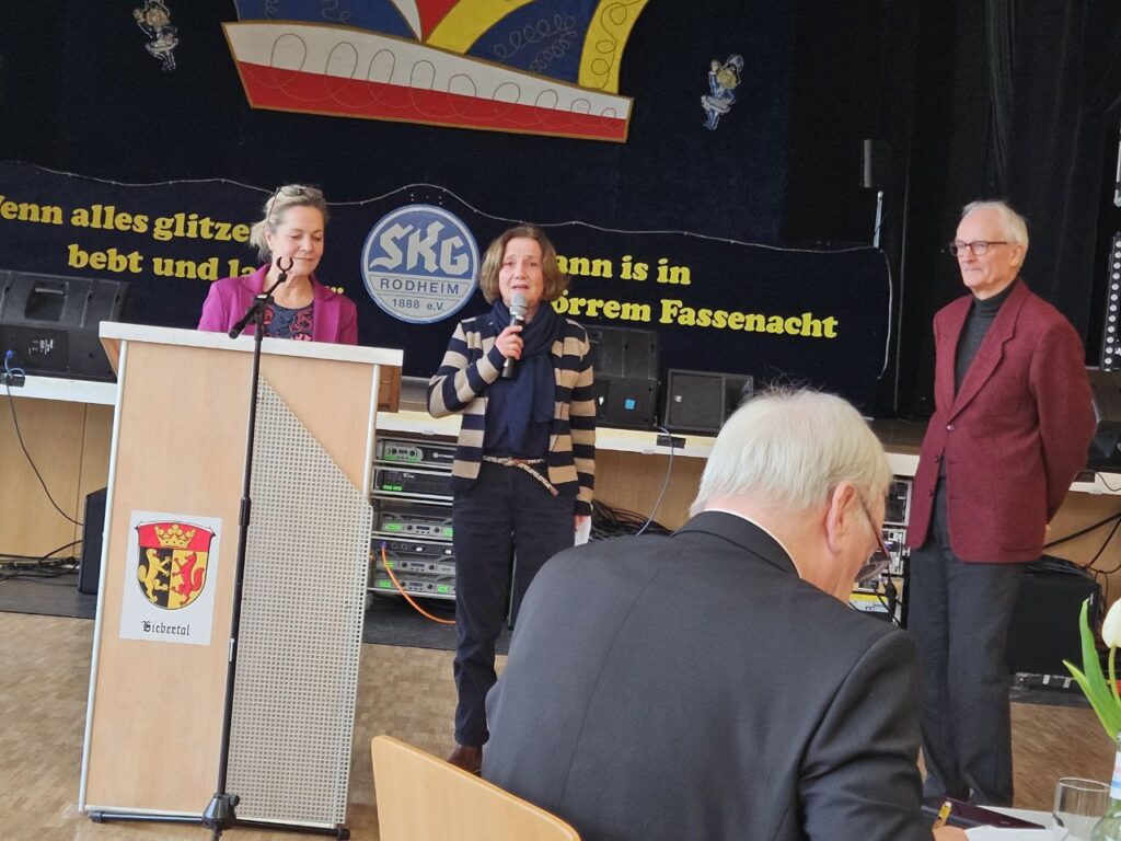 Steffen Balser sprach von Katha Muhly (Bild re.) als Alltagsheldin. Kaum nach Biebertal gezogen fragte sie, wie sich sich engagieren könnten. Und bald schon war sie in verschiedenen Funktionen immer zur Stelle, wo sie gebraucht wurde.