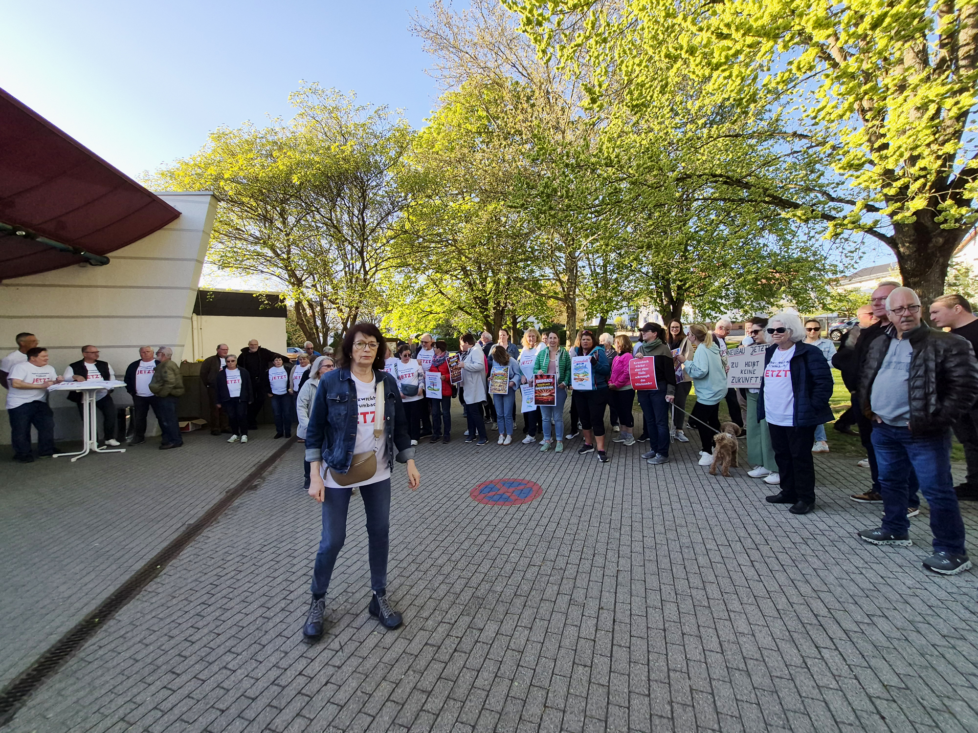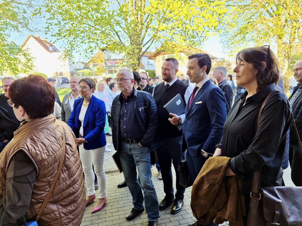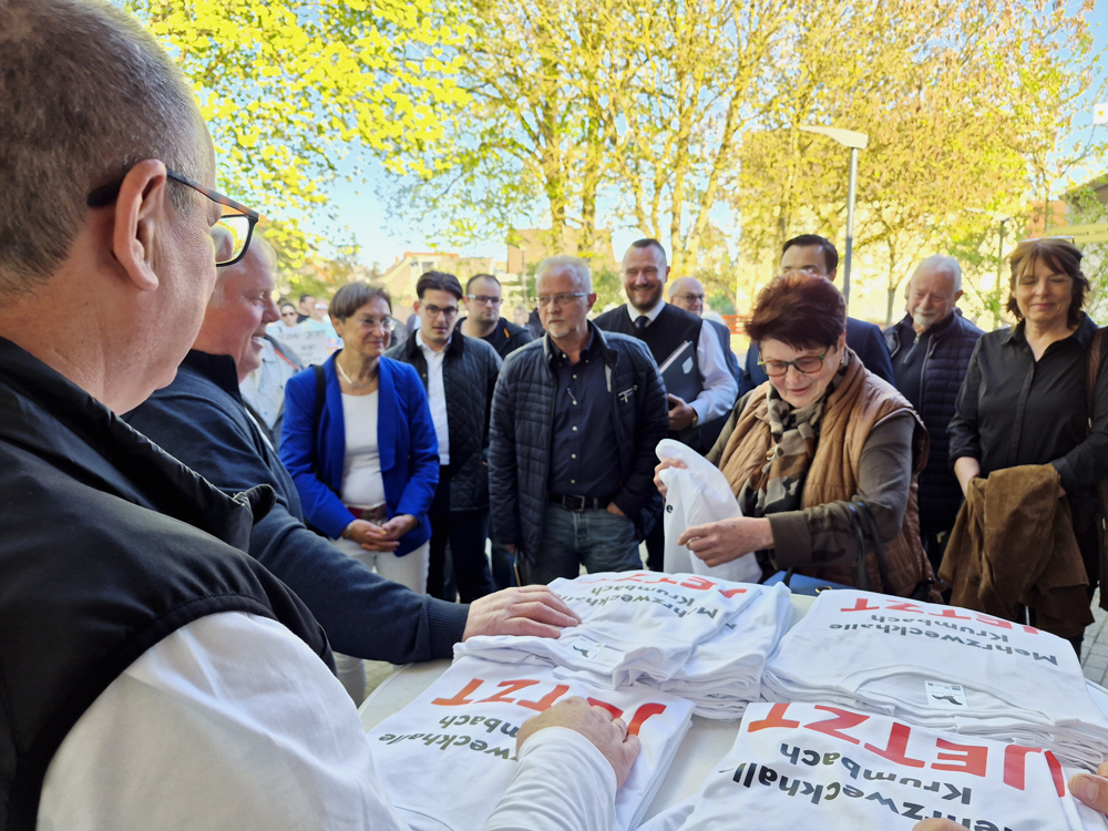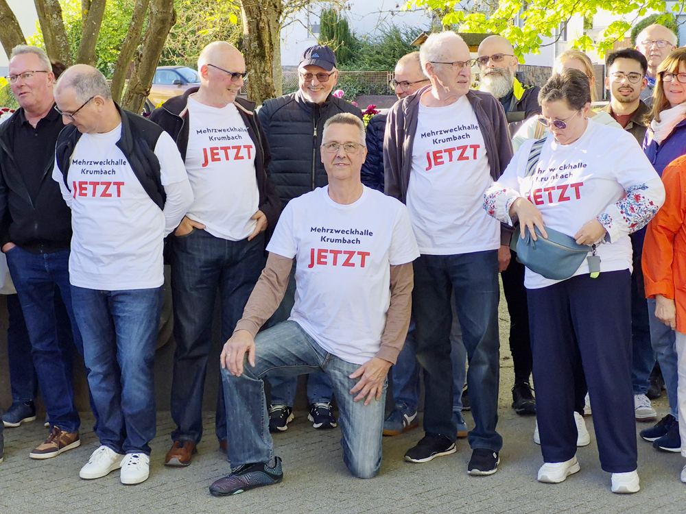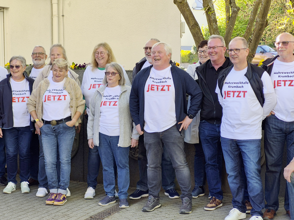 22. April 2026: Die Eröffnung der neuen Sitzungsperiode der Gemeindevertretung Biebertal im Bürgerhaus Rodheim steht bevor. Und davor stehen etwa 70 Krumbacher Bürgerinnen und Bürger, die das neue Parlament mit einem besonderen Hingucker darauf hinweisen, dass es endlich mal an der Zeit ist für ihre neue Mehrzweckhalle.